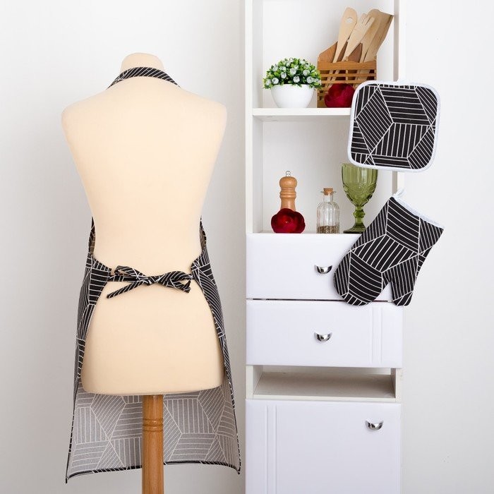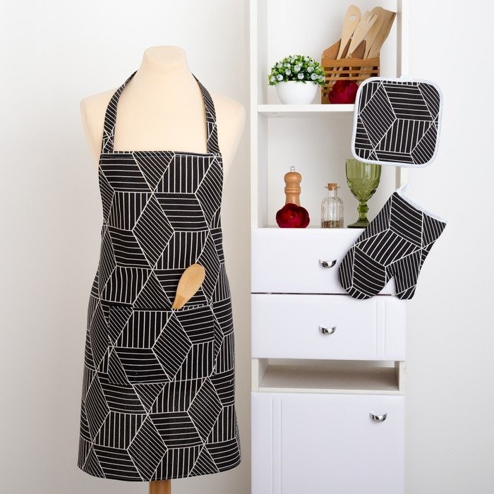 Набор Доляна фартук/прихватка/варежка, Тренд черн, 100%пэ, рогожка 200 гр/м