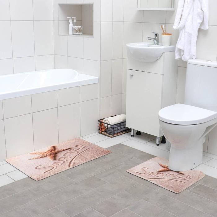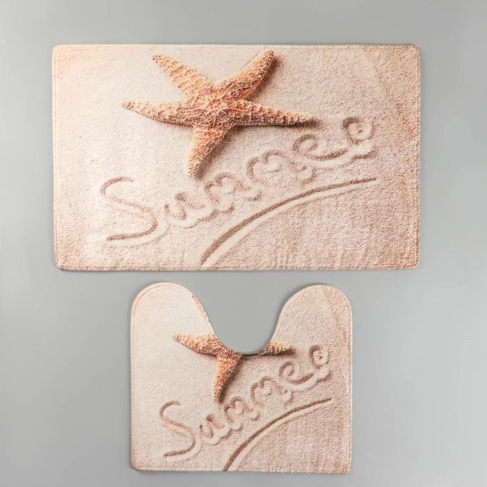 Набор ковриков для ванны и туалета Доляна «На пляже», 2 шт: 40×45, 45×75 см