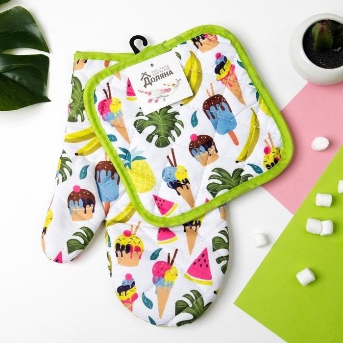 Кухонный набор (2 предмета) Доляна Summer, прихватка 16×16 см, рукавица 25*16 см, 100% п/э