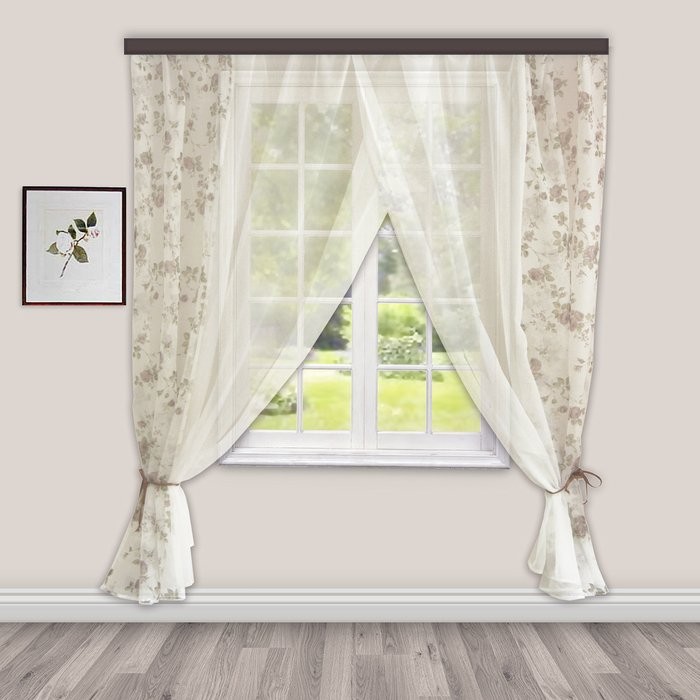 Комплект штор для кухни Акварель 280×160 см, коричневый, 100% п/э