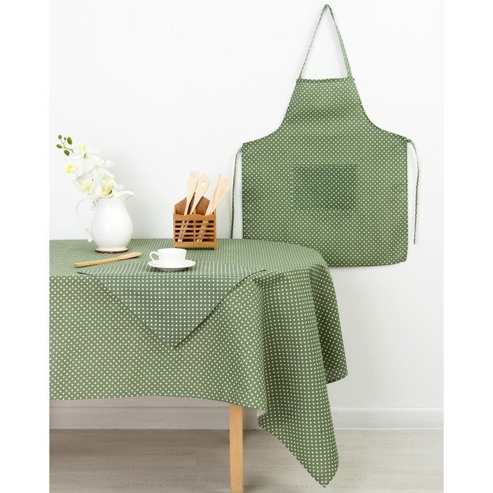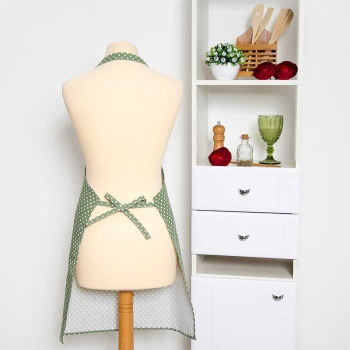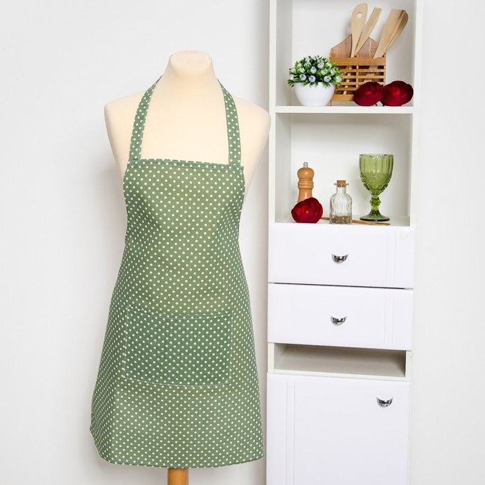 Фартук Доляна «Горох» зеленый, 60х70см, 100%пэ, рогожка 200 гр/м