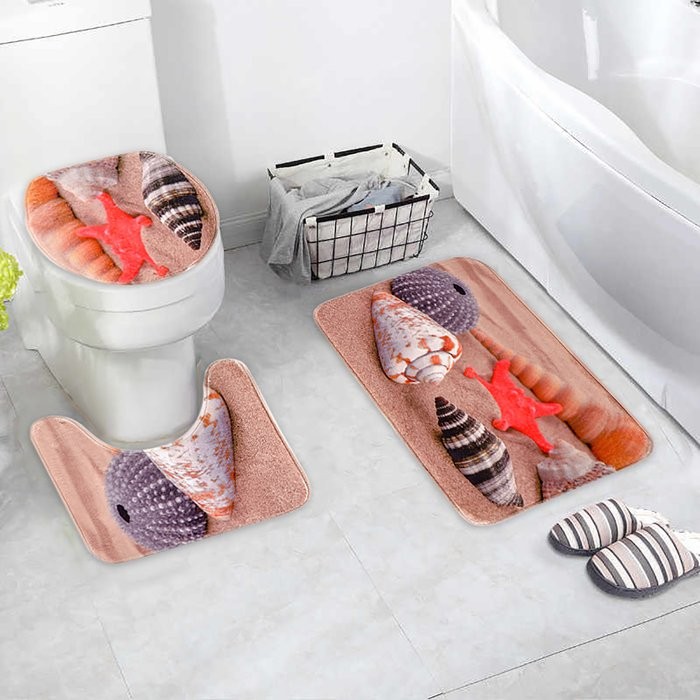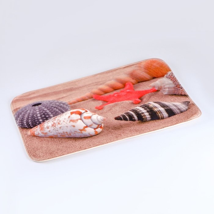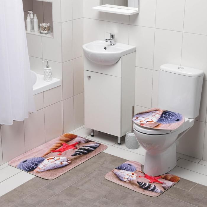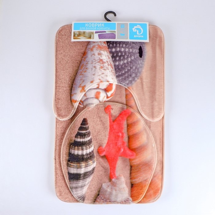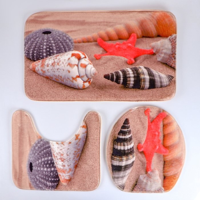 Набор ковриков для ванны и туалета Доляна «Ракушки на песке», 3 шт: 35×39, 40×50, 45×75 см