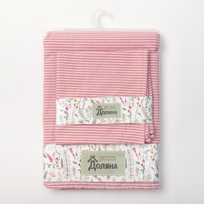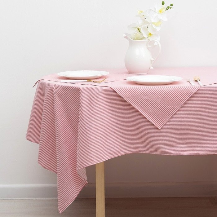 Набор Доляна скатерть 145х200см/салфетки 40х40см 4шт, Розовые полоски, 100%пэ,рогожка 200 гр/м 358