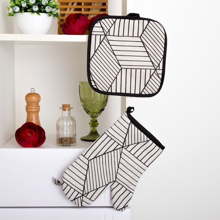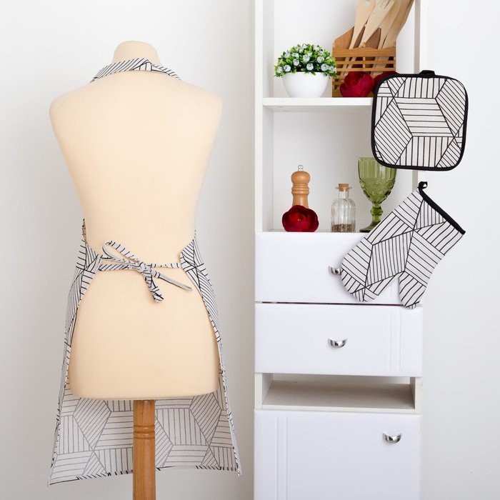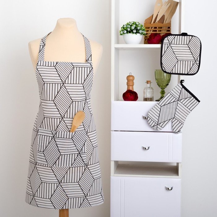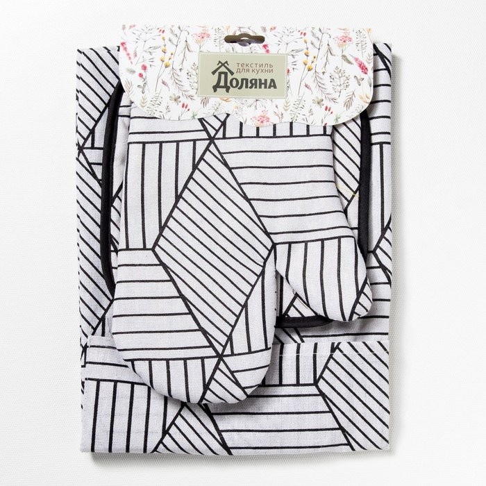 Набор Доляна фартук/прихватка/варежка, Тренд бел, 100%пэ, рогожка 200 гр/м