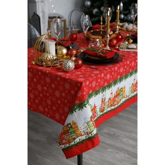 Скатерть Доляна «Новый год: Волшебный город» 220×149 см, 100% хлопок, 164 г/м2