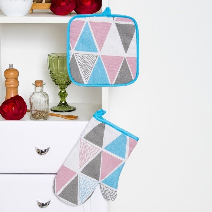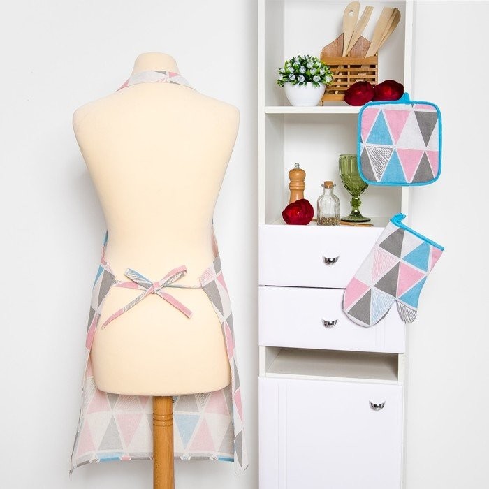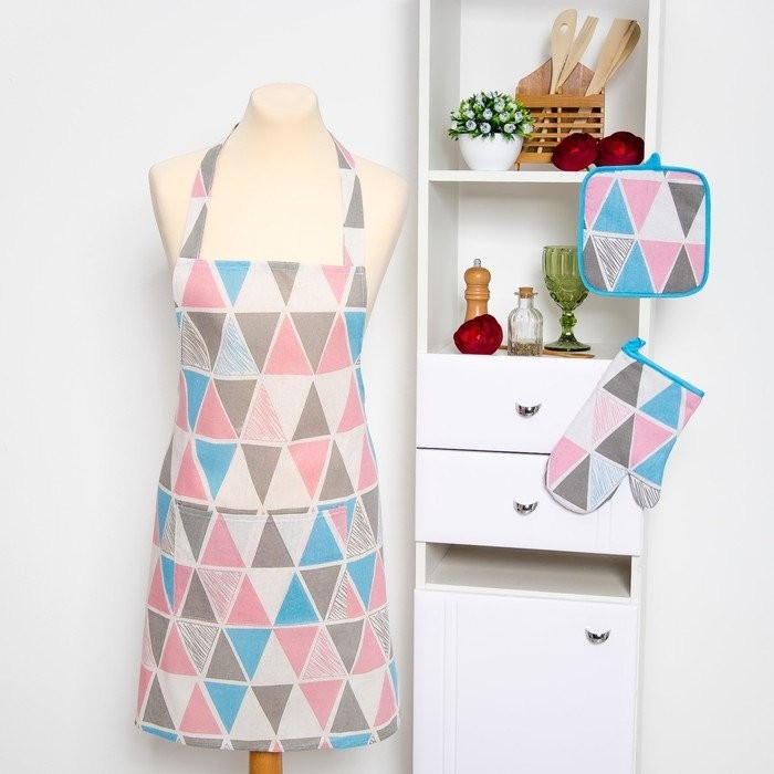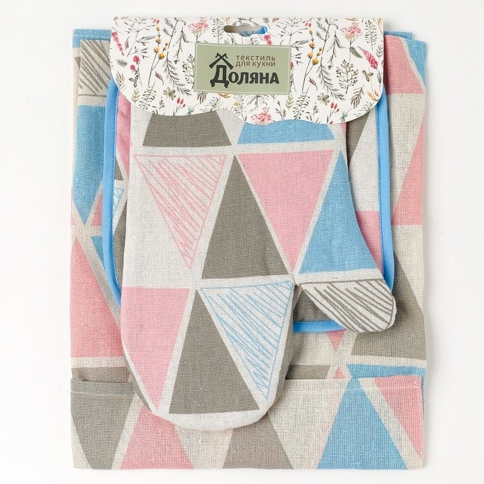Набор Доляна «Мозаика», фартук/прихватка/варежка, рогожка