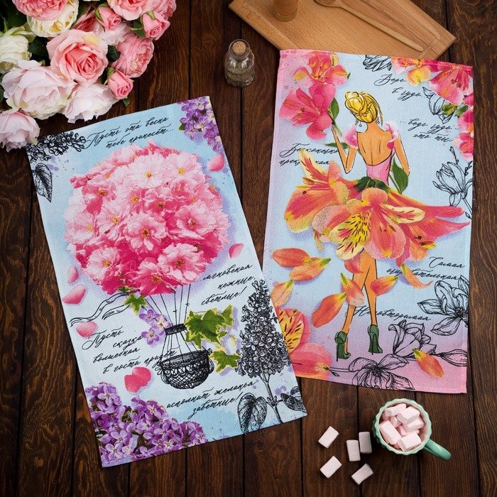 Полотенце кухонное Доляна «Волшебная весна» 34×60 см, рогожка, 100% хлопок, 160 гр/м
