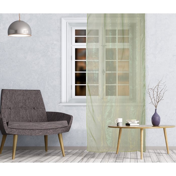 Штора тюль 145×260 см, органза, цвет зелёный, на шторной ленте, 100% полиэстер