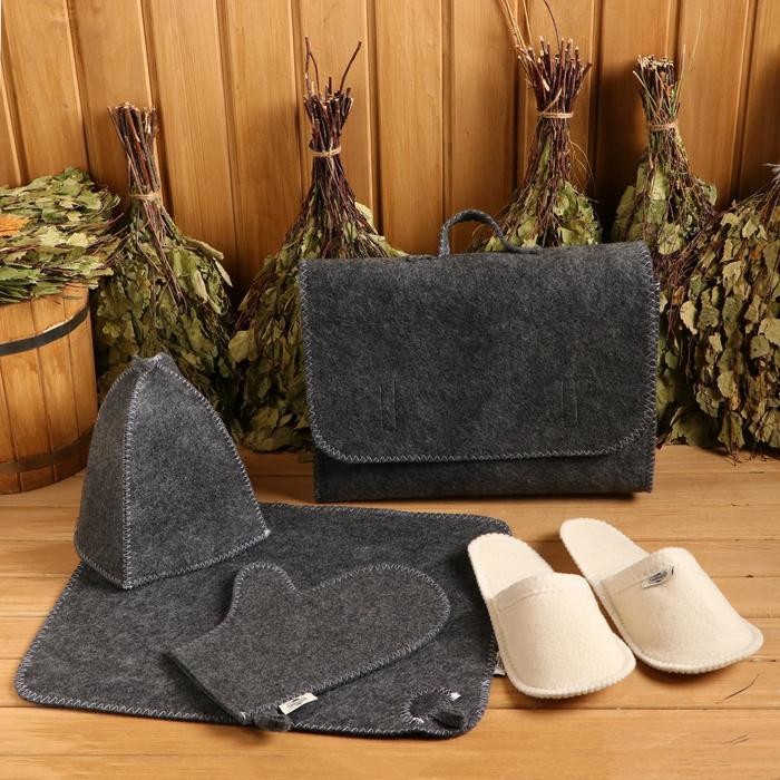 Набор банный портфель 5 предметов серый, без вышивки, войлок