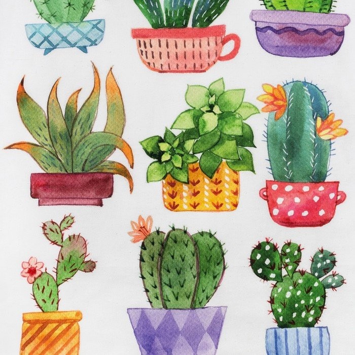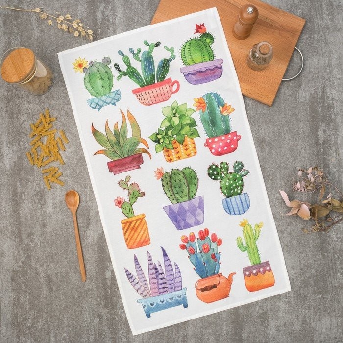 Полотенце «Этель» Кактусы 40×73 см, 100% хл, саржа 190 гр/м2