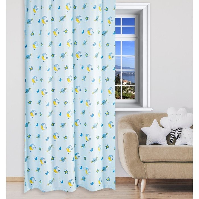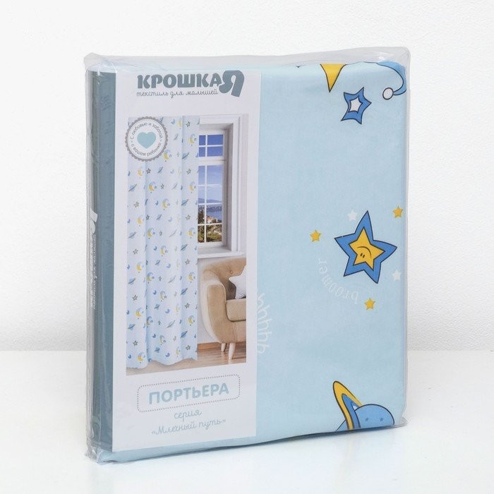 Портьера Крошка Я «Млечный путь» без держателя цвет голубой, 170×260 см, блэкаут, 100% п/э