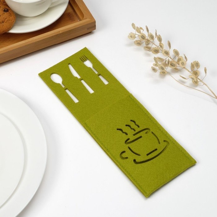 Конверт для столовых приборов Доляна «Кофе» цвет зелёный, 9×25 см