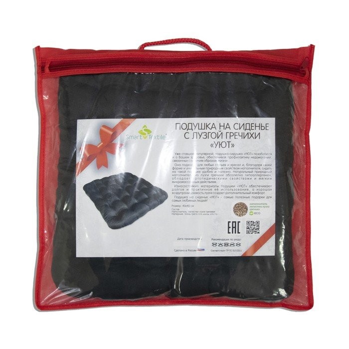 Подушка на стул Уют черный 40х40см лузга гречихи, грета хл35%, пэ65%