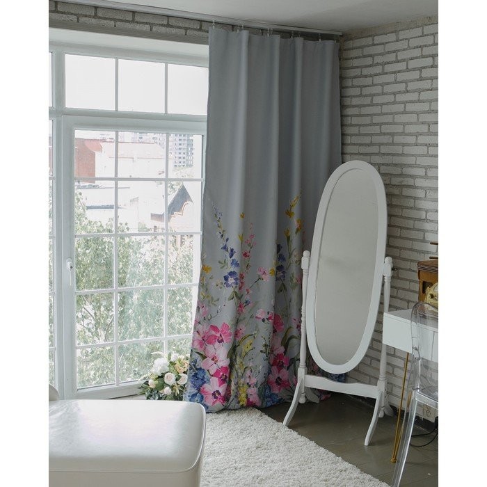 Штора портьерная Этель «Акварель» цв.розовый, 145*265см, пл. 210 г/м2, 100 п/э