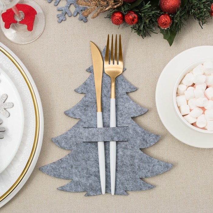 Конверт для столовых приборов «Елка» 19×21 см, 100% п/э, фетр