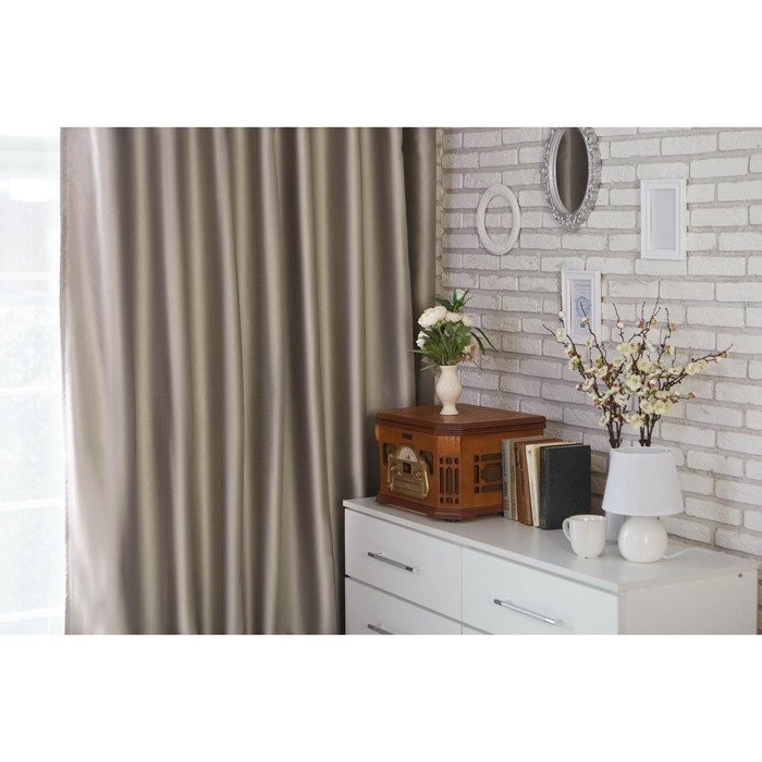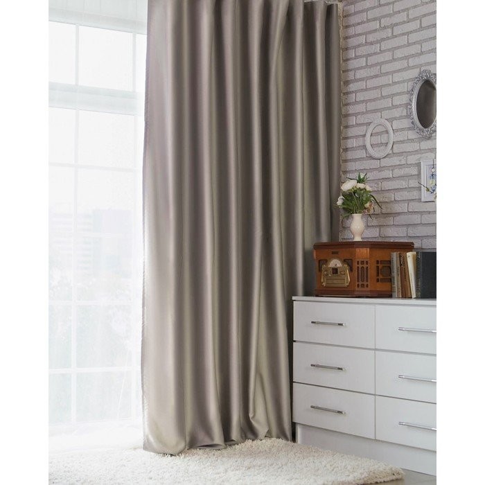 Штора портьерная «Этель» 145×265 см, двусторонний блэкаут, цвет Серебряный, пл. 240 г/м², 100% п/э