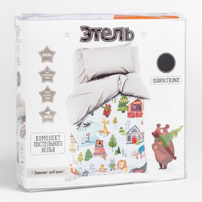 Постельное бельё «Этель» 1,5 сп Зимние забавы 143×215 см, 150×214 см, 50×70 см -1 шт, 100% хл, бязь 125 г 43 494