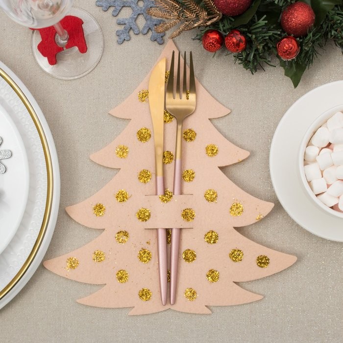 Конверт для столовых предметов «Ёлка с золотом» 23×35 см, 100% п/э, фетр