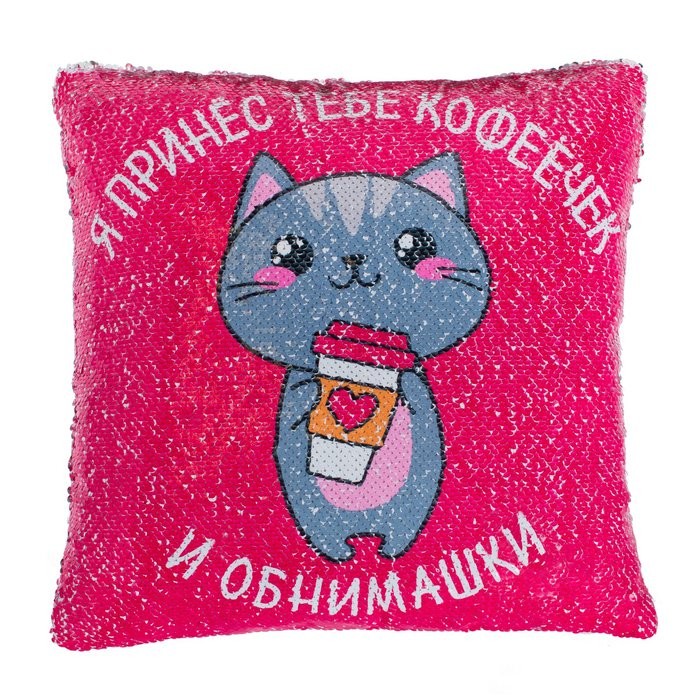 Наволочка с пайетками «Этель» Обнимашки, 40×40 см, велюр, 100% п/э