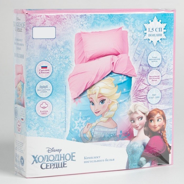 Постельное бельё 1,5 сп «Холодное сердце», 143×215 см, 150×214 см, 50×70 см -1 шт., поплин 125 г/м2