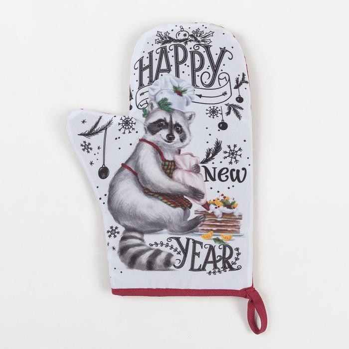 Набор кухонный Happy new year: варежка-прихватка 20х28см, прихватка 17×17 35% хл,65% п/э