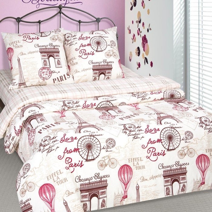 Постельное бельё дуэт Артпостель «Прогулка по парижу», 143х217см 2шт, 220х240см, 70х70см 2шт, поплин
