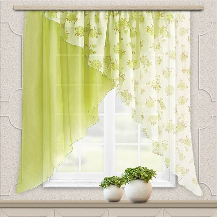 Тип тюли: Готовый, Короткий, С рисунком, С цветами, Тюль-арка