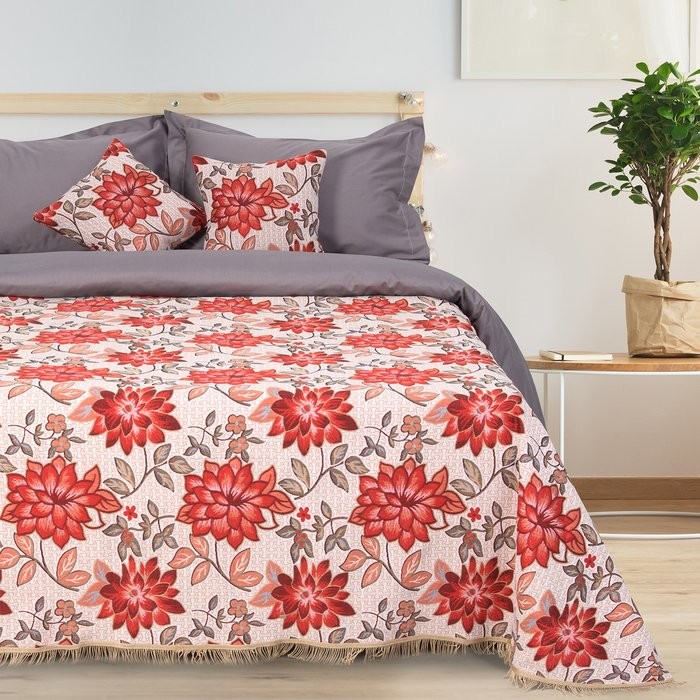 Покрывало гобеленовое Этель «Роскошь» с бахромой, бордовый, 140х200см, п/э 80%, хл 20% (450 г/м2)
