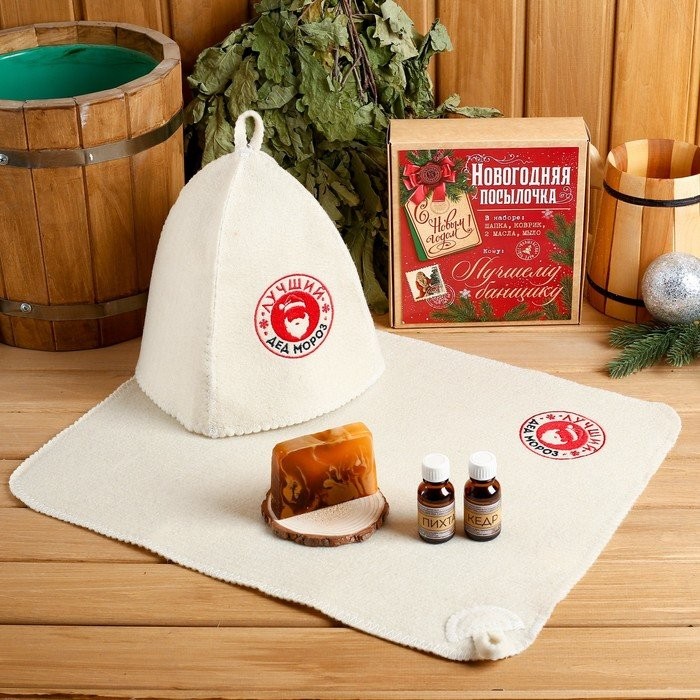 Подарочный набор «Новогодняя посылочка»: шапка, коврик, 2 масла, мыло