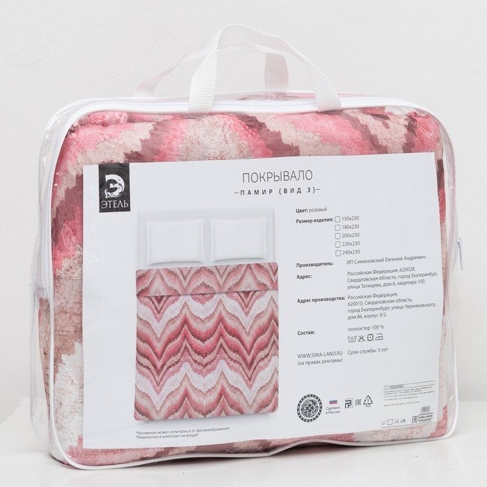 Покрывало Этель «Памир» евро 220*230 см, цв. розовый,160 г/м2,100% п/э
