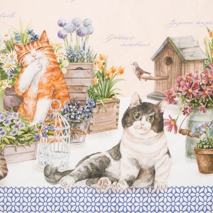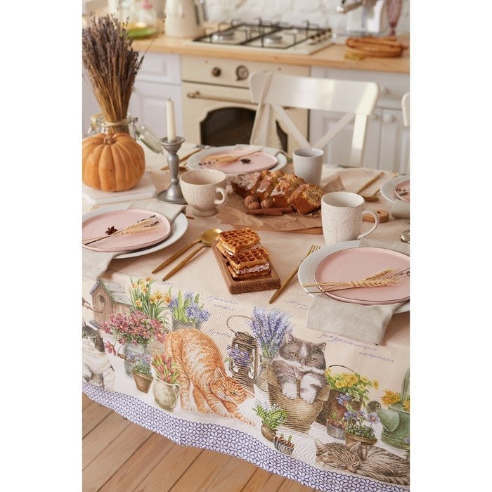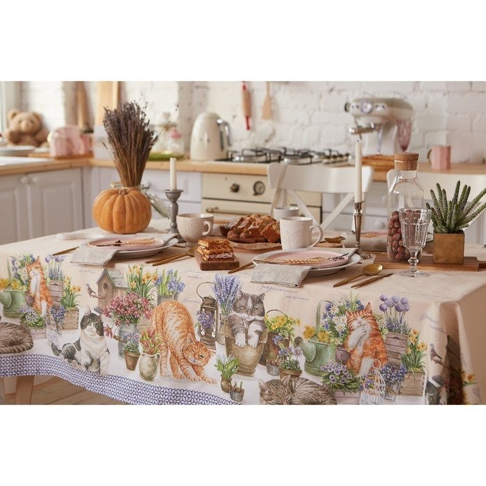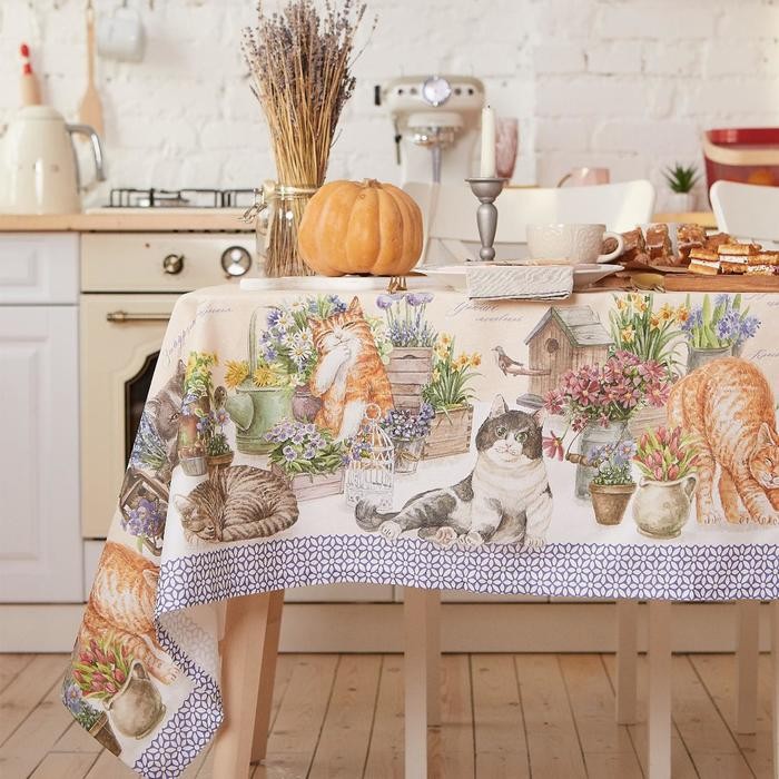 Скатерть «Этель» Уютные коты180×147 см, 100% хлопок, саржа 190 г/м2