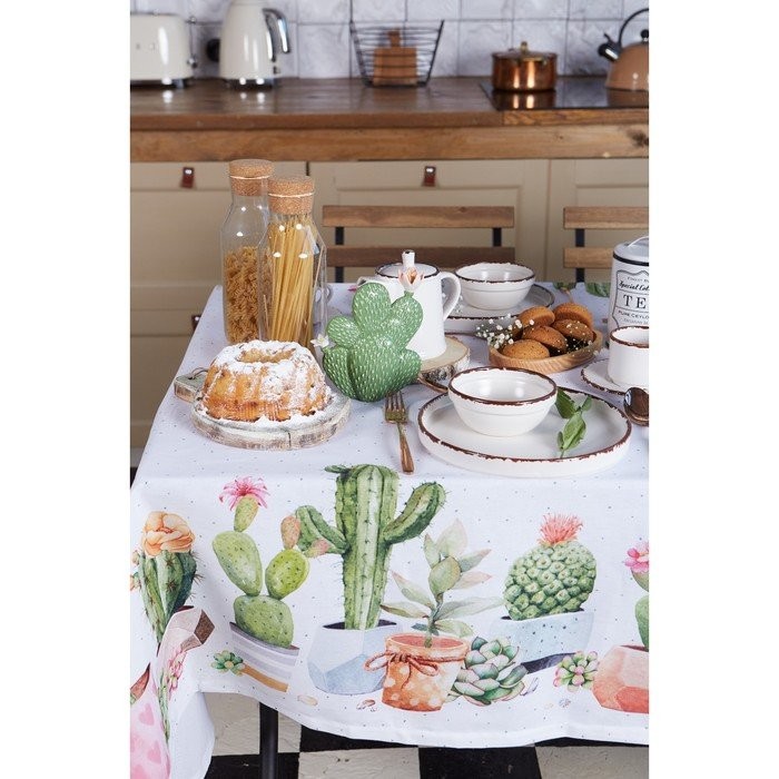 Скатерть Этель «Кактусы» 180×147 см, 100% хл, рогожка 160 гр/м2