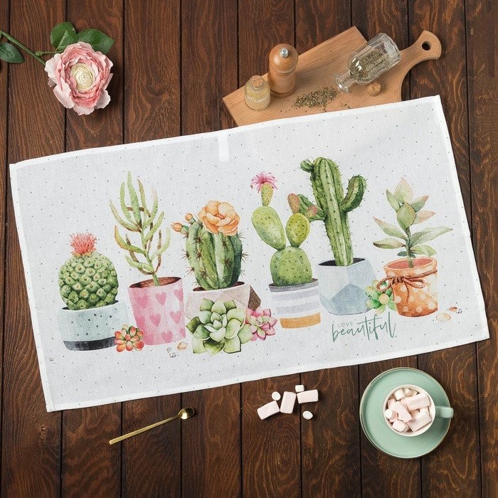 Полотенце «Этель» Кактусы 40×73 см, 100% хл, рогожка 160 гр/м2