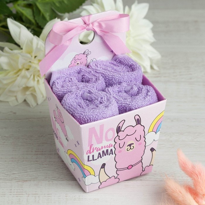 Набор махровых полотенец «No probLama» 30×30 см-4шт, хлопок, 340 г/м2