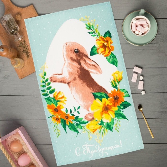 Полотенце пасхальное Доляна «С праздником» 35×60 см, 100% хл, 160г/м2