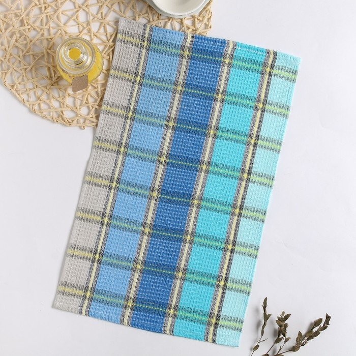 Полотенце 30*50 см, Радуга, сине-желтый, 220 гр/м, вафля, хл