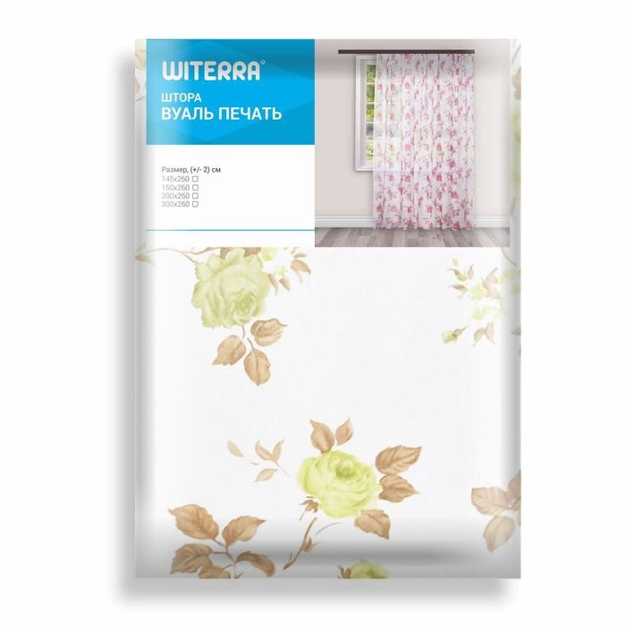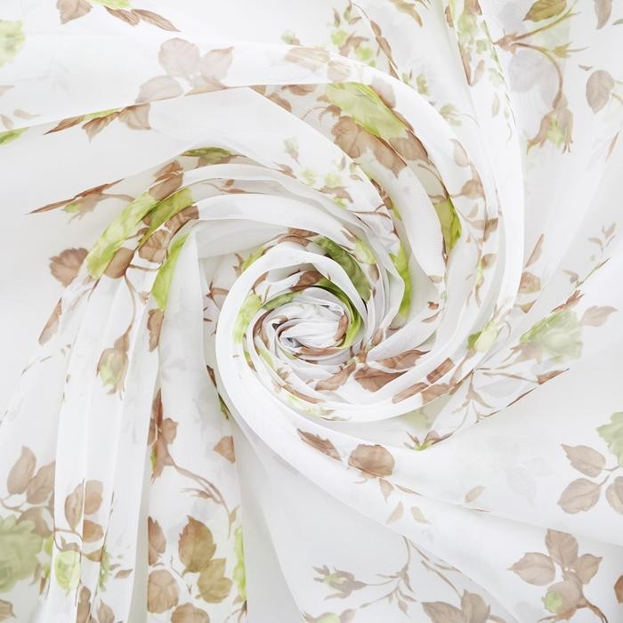 Тюль вуаль-печать «Кустовая роза» 300×260 см, зелёный, пэ 100%