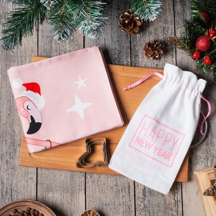 Набор в мешочке «Happy New Year» полотенце 40х73см, формочки для запекания 3 шт