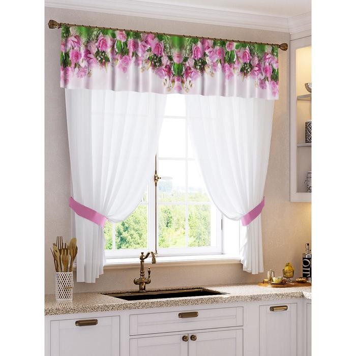 Комплект штор для кухни Наталья тюль (294х160см), ламбрекен (290×40 см), подхваты, пэ 100%