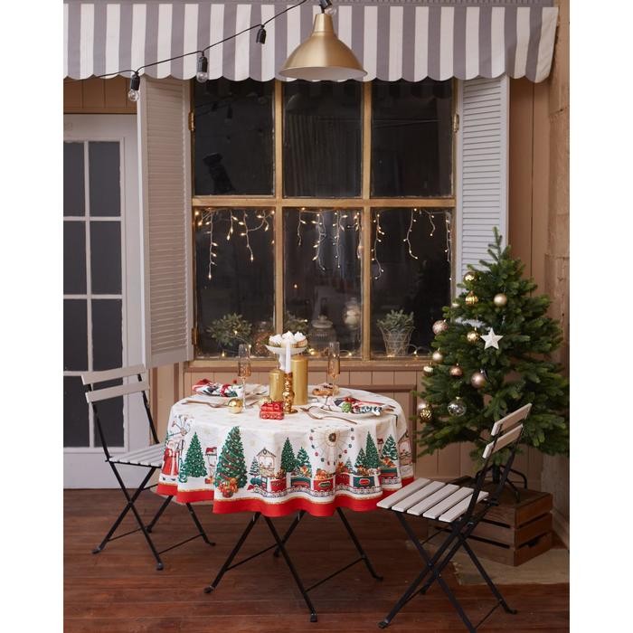 Скатерть «Этель» Новогодняя ярмарка d=220 +/- 3см с ГМВО, 100%хл, саржа 190 гр/м2