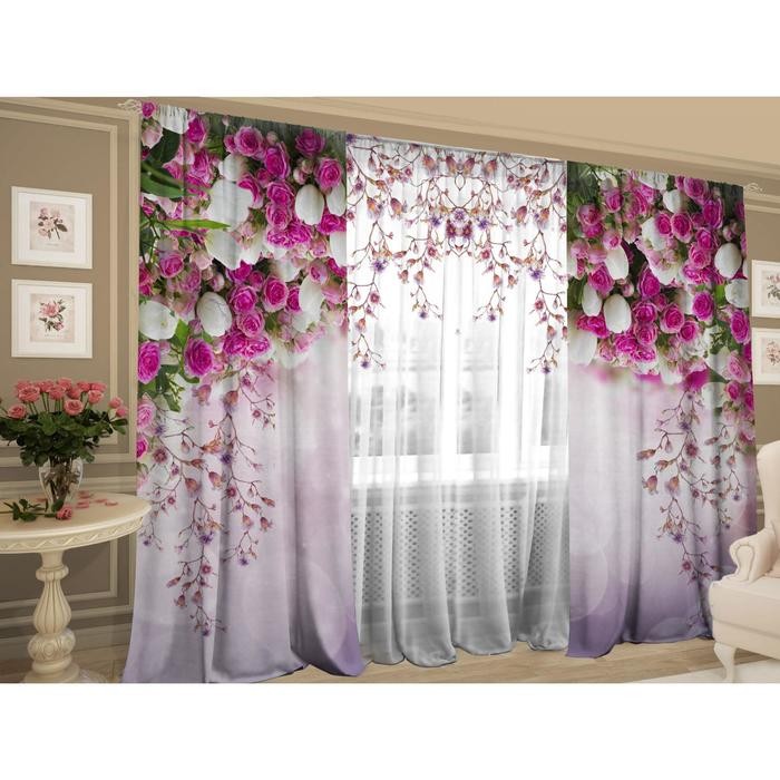 Комплект штор Баланс цветов шторы (147х267см-2 шт), тюль (147х267см), габардин, пэ 100%