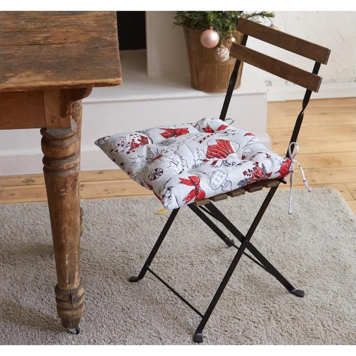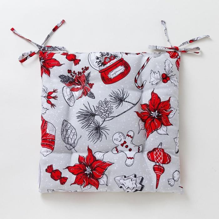 Сидушка на стул «Доляна» Новогоднее настроение 42х42×5 см, 100% хлопок, 164 г/м2