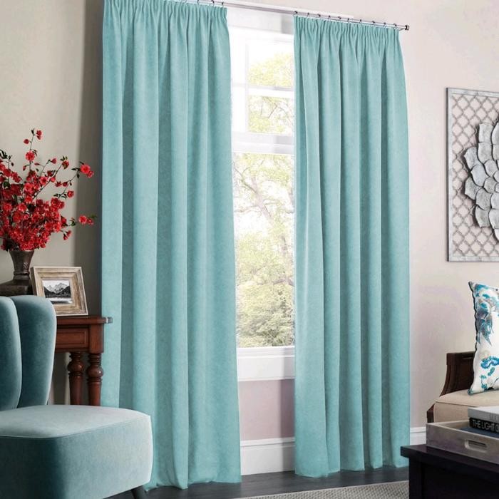 Комплект штор «Софт», размер 145×270 см — 2 шт, подхват — 2 шт, небесно — голубой
