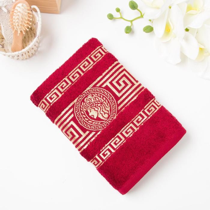 Полотенце махровое жаккардовое Афина 70×140 см, бордовый, хлопок 100%, 450г/м2