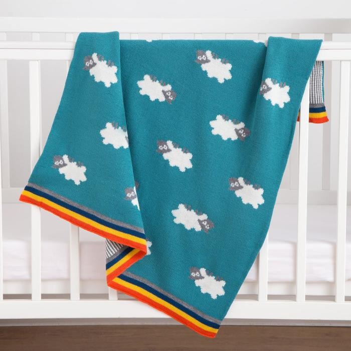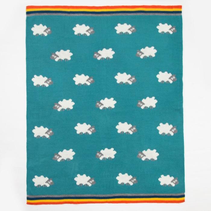 Плед вязаный Крошка Я «Овечки» цв. темно-зеленый, 80*100 см, 100% хлопок