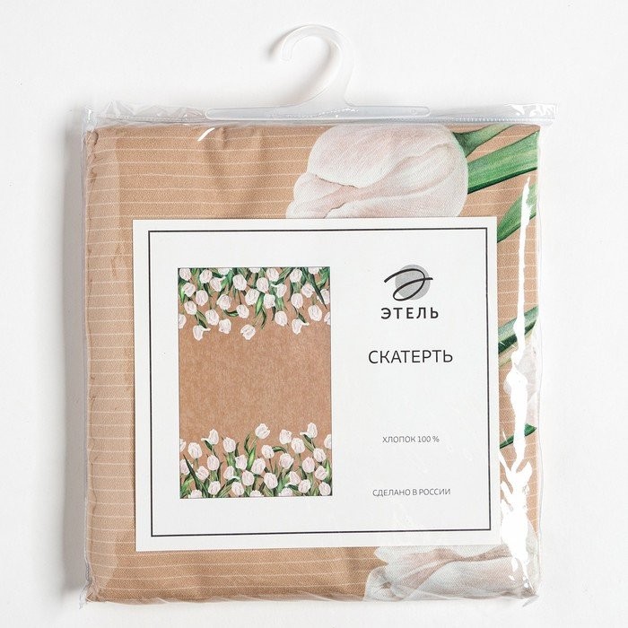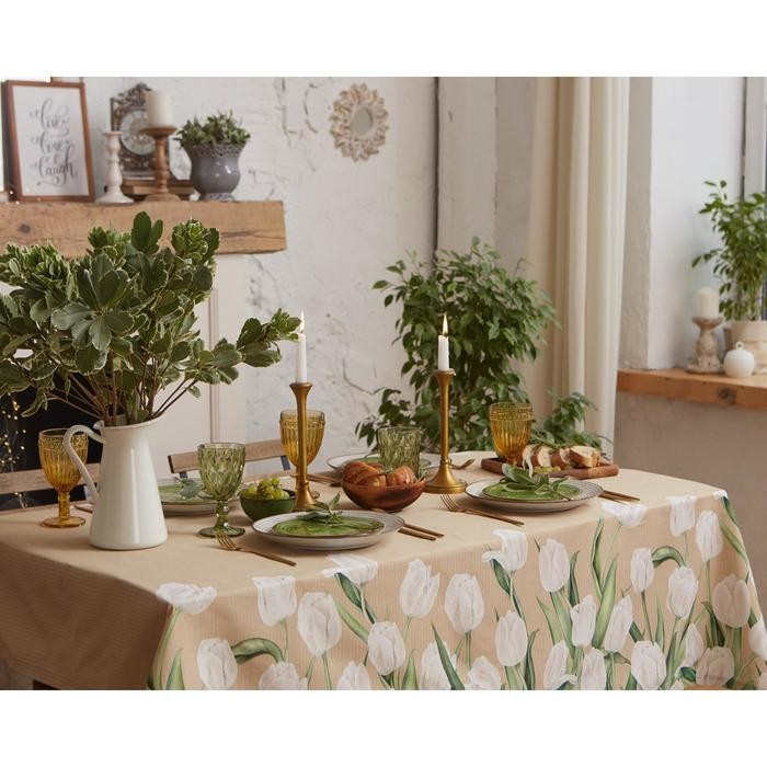 Скатерть «Этель» Белые тюльпаны 149х220см, 100% хл, саржа 190 г/м2