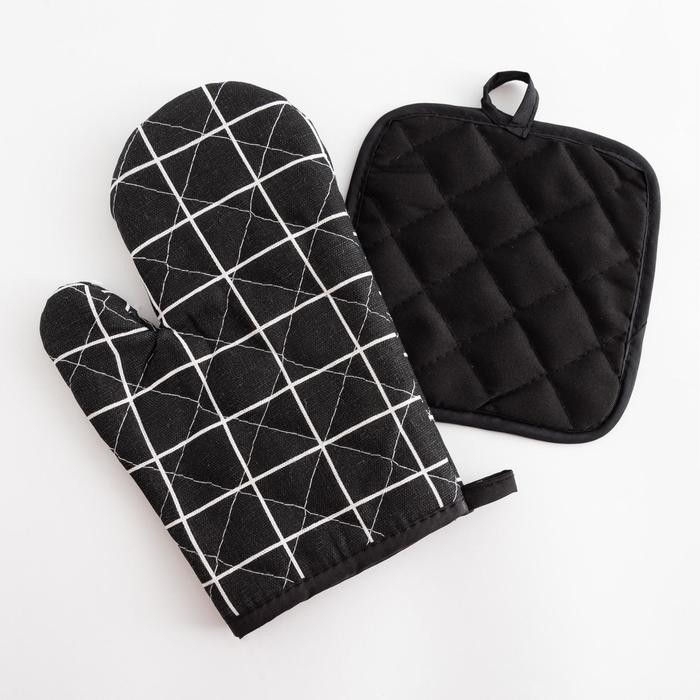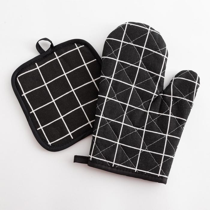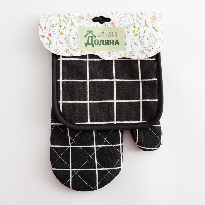 Кухонный набор Доляна «Клетка» цв.черный, прихватка 17*17 см, рукавица 26*16 см,100% п/э