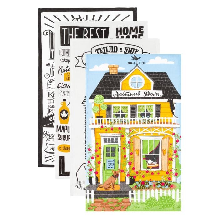 Набор кухонных полотенец Доляна «Любимый дом», 35х60см-4шт, 100% хл