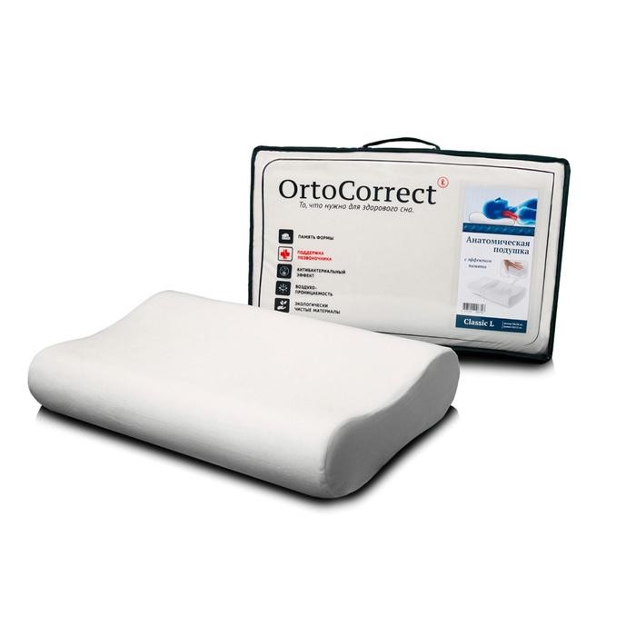 Ортопедическая подушка OrtoCorrect Classic L, 58×37 см, валики 9/11 см.