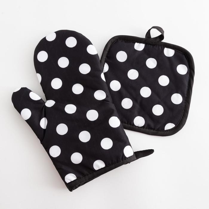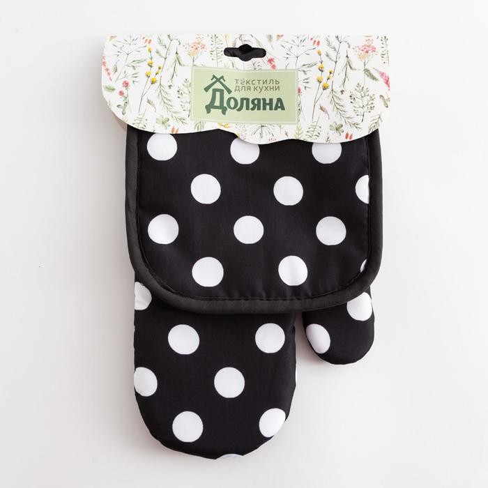 Кухонный набор (2 предмета) Доляна «Горох», цвет черный, прихватка 17×17 см, рукавичка 26×16 см, 100% п/э
